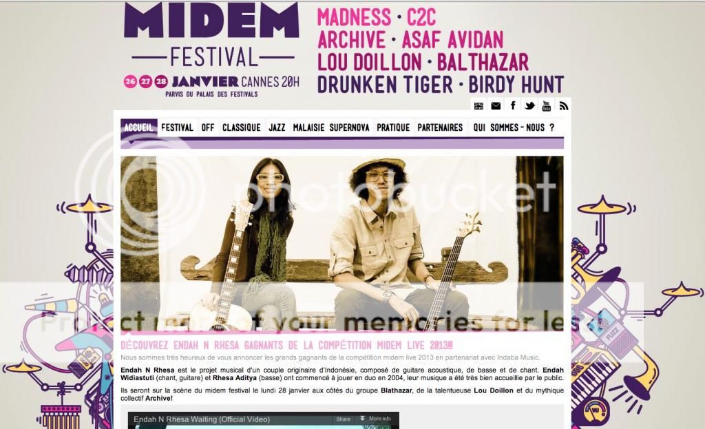 Kami berhasil memenangkan kompetisi via internet yang hadiahnya adalah bermain di MAIN STAGE festival bergengsi di Eropa : Midem Festival 2013. Midem Conference & Festival 2013 adalah acara perhelatan industri musik akbar yang melibatkan peserta dari berbagai dunia yang berkaitan dengan musik industri. Di acara ini banyak diskusi dan seminar yang berkaitan dengan industri musik dunia, dan tentunya pembicaranya adalah orang-orang yang sudah sangat ahli di bidangnya. Dan panggung pun disediakan untuk memeriahkan dan sebagai ajang ‘showcase’ musisi di depan para pelaku industri musik dunia. Kebayang bagaimana besarnya kesempatan dan nilai dari panggung tersebut kan?